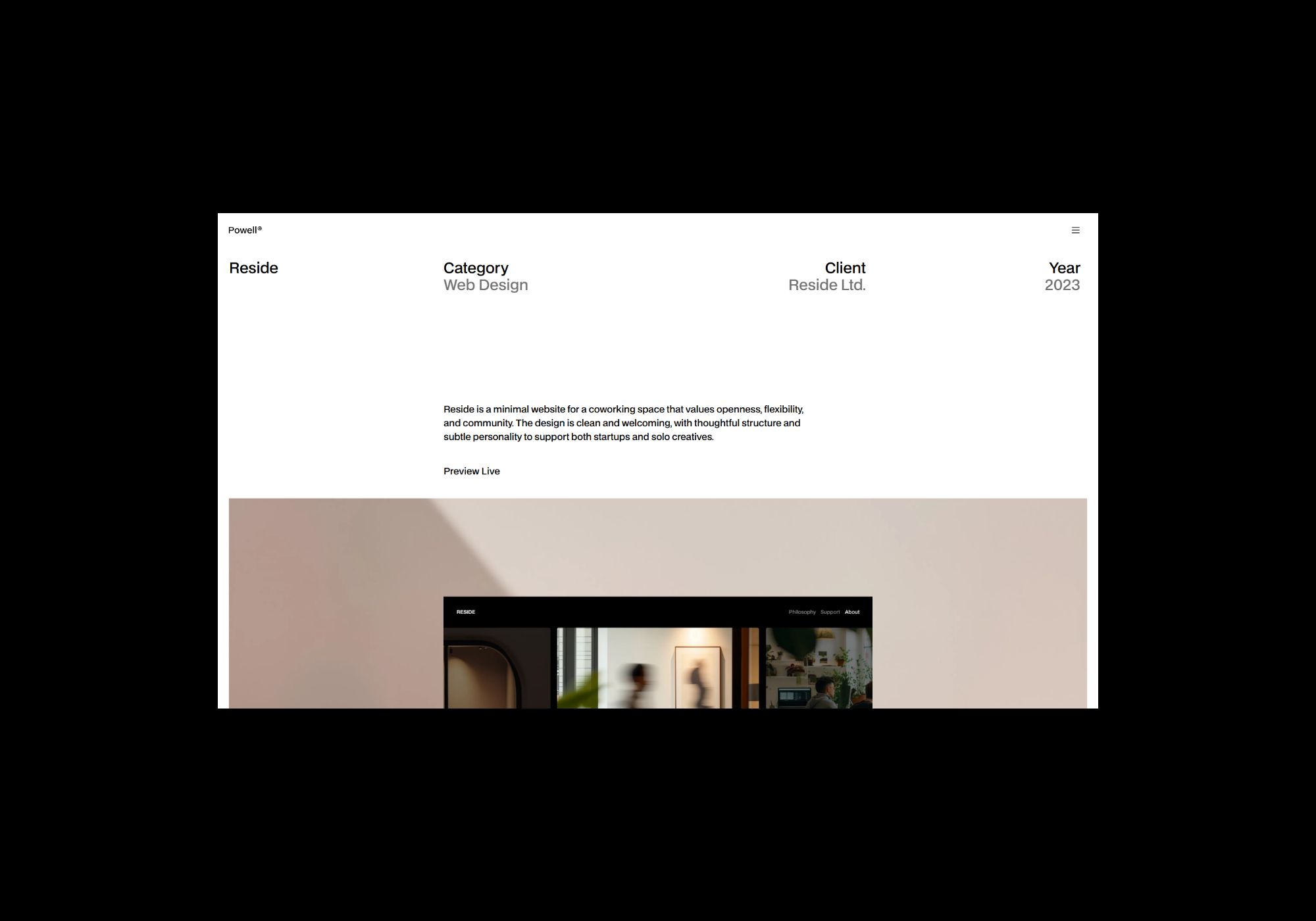 Night Ride plays with contrast and atmosphere. The interface leans into deep tones, soft glow effects, and fluid transitions to create a sense of movement through a city at night. Minimal UI elements support the visuals rather than compete with them. The result is a sleek, immersive browsing experience that feels modern, moody, and highly intentional.
